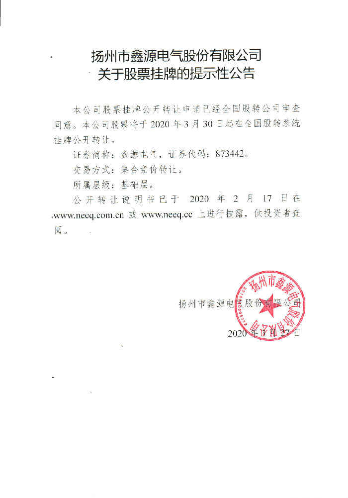 日前,我公司已獲全國股轉(zhuǎn)公司出具的同意掛牌函,正式登陸“新三板”。?